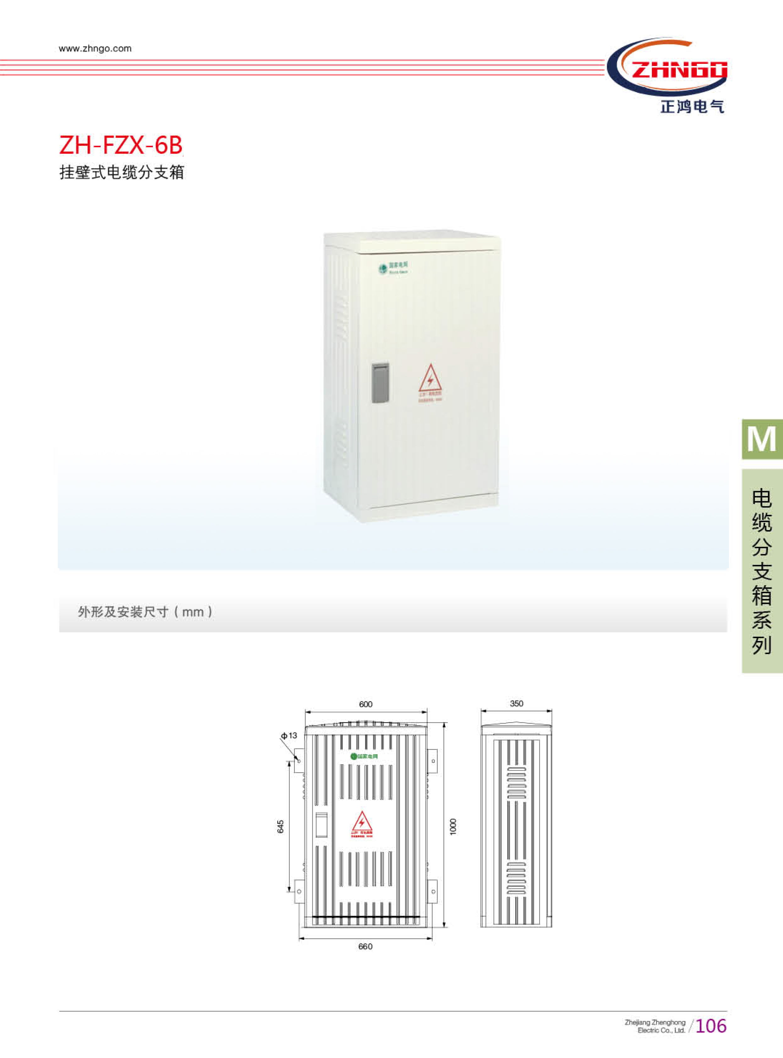 浙江正鴻電氣有限公司生產(chǎn)的 SMC 電纜分支箱主要用于公共電網(wǎng)中,新型多樣的接線方式和元器件布置,能完全實(shí)現(xiàn)不鉆孔母線排安裝,母排承載流量不受影響。根據(jù)輸配電網(wǎng)和用戶(hù)的需求,提供多種分線方式,箱體類(lèi)型及安裝方式靈活多變。在國(guó)家域網(wǎng)建設(shè)和改造中,是取代架空進(jìn)線的介紹支持產(chǎn)品。其廣泛用于變配電站所、公礦企業(yè)、街道兩側(cè)、花園住宅小區(qū)、高層建筑、機(jī)場(chǎng)等戶(hù)外公共場(chǎng)所的三相低壓輸配電系統(tǒng)中,作為用電纜向其他用戶(hù)或設(shè)備分配電能的成套定型設(shè)備。
